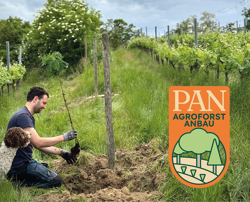 Unsere Ackerflächen und Weingärten sind von über 40.000 m² wertvollen Landschaftselementen umgeben – darunter Hecken, Sträucher, Bäume, extensive Wiesen und Feuchtgewässer. Diese Kleinstrukturen bilden das ökologische Rückgrat unserer Kulturlandschaft. Sie bieten Lebensraum für zahlreiche Tier- und Pflanzenarten, fördern Nützlinge, schützen vor Erosion, stabilisieren Boden und Wasserhaushalt und tragen aktiv zum Klimaschutz bei. Diese Prinzipien spiegeln sich auch in unserer Agroforstwirtschaft wider. Seit 2025 sind wir das erste Weingut mit PAN-Agroforst-Zertifizierung. PAN ist das weltweit erste Zertifikat mit standardisierter Qualitätssicherung, das die vielfältigen ökologischen und landwirtschaftlichen Leistungen von Agroforstbetrieben sichtbar macht – im Sinne von wildwux und einer zukunftsfähigen Landwirtschaft. Siehe PAN Agroforst & wildwux